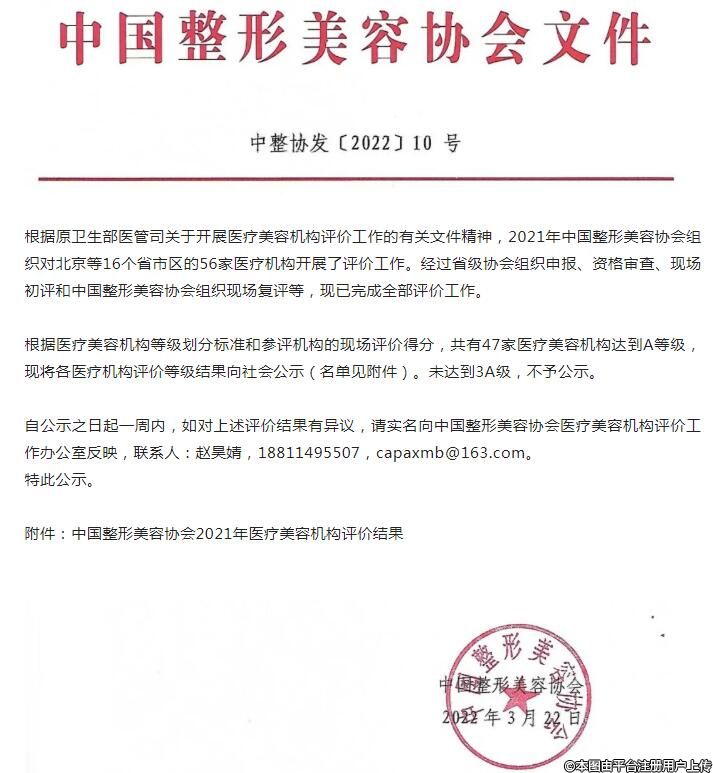 3月22日,中國整形美容協(xié)會公布2021年醫(yī)療美容機構(gòu)等級評價結(jié)果。根據(jù)醫(yī)療美容機構(gòu)等級劃分標(biāo)準(zhǔn)和參評機構(gòu)的現(xiàn)場評價得分,47家醫(yī)療美容機構(gòu)達(dá)到A等級標(biāo)準(zhǔn)。