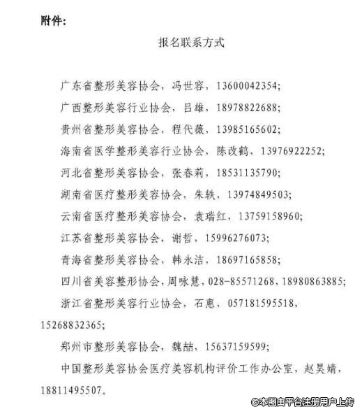 中國(guó)整形美容協(xié)會(huì)醫(yī)療美容機(jī)構(gòu)評(píng)價(jià)工作辦公室,趙昊婧,18811495507。