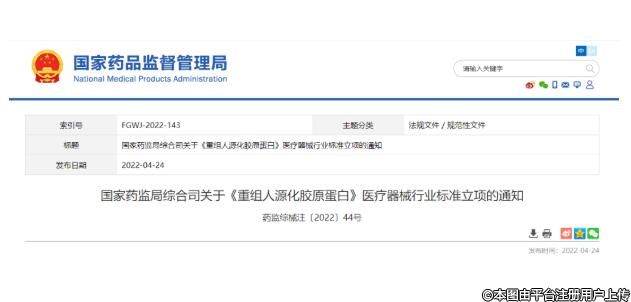 政策監(jiān)管 《重組人源化膠原蛋白》醫(yī)療器械行業(yè)標準將制訂