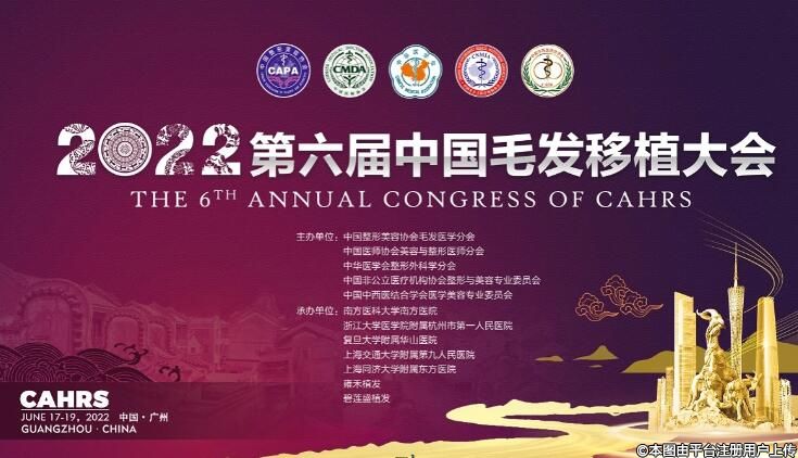 由中國整形美容協(xié)會毛發(fā)醫(yī)學(xué)分會、中國醫(yī)師協(xié)會美容與整形醫(yī)師分會、中華醫(yī)學(xué)會整形外科學(xué)分會、中國非公立醫(yī)療機構(gòu)協(xié)會整形與美容專業(yè)委員會、中國中西醫(yī)結(jié)合學(xué)會醫(yī)學(xué)美容專業(yè)委員會聯(lián)合主辦,南方醫(yī)科大學(xué)南方醫(yī)院、浙江大學(xué)醫(yī)學(xué)院附屬杭州市第一人民醫(yī)院、復(fù)旦大學(xué)附屬華山醫(yī)院、上海交通大學(xué)附屬第九人民醫(yī)院、上海同濟大學(xué)附屬東方醫(yī)院、雍禾植發(fā)、碧蓮盛植發(fā)共同承辦的2022第六屆中國毛發(fā)移植大會將于2022年6月17-19日在廣州越秀國際會議中心隆重舉行。
