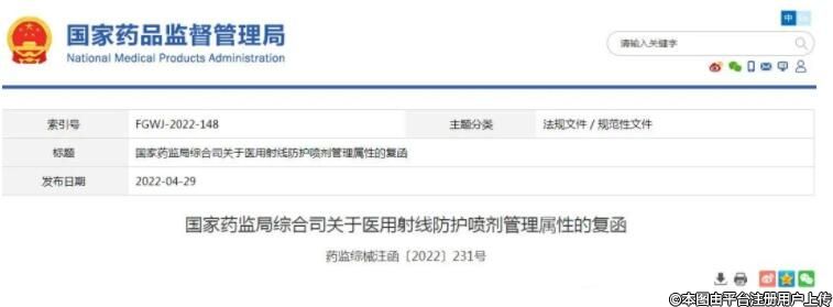 國(guó)家藥監(jiān)局:醫(yī)用射線防護(hù)噴劑按第二類(lèi)醫(yī)療器械管理