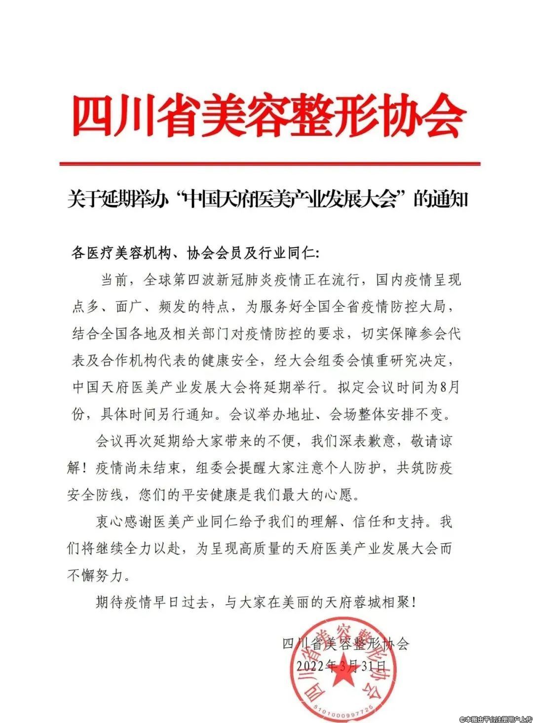 延期通知 2022中國天府醫(yī)美產(chǎn)業(yè)發(fā)展大會