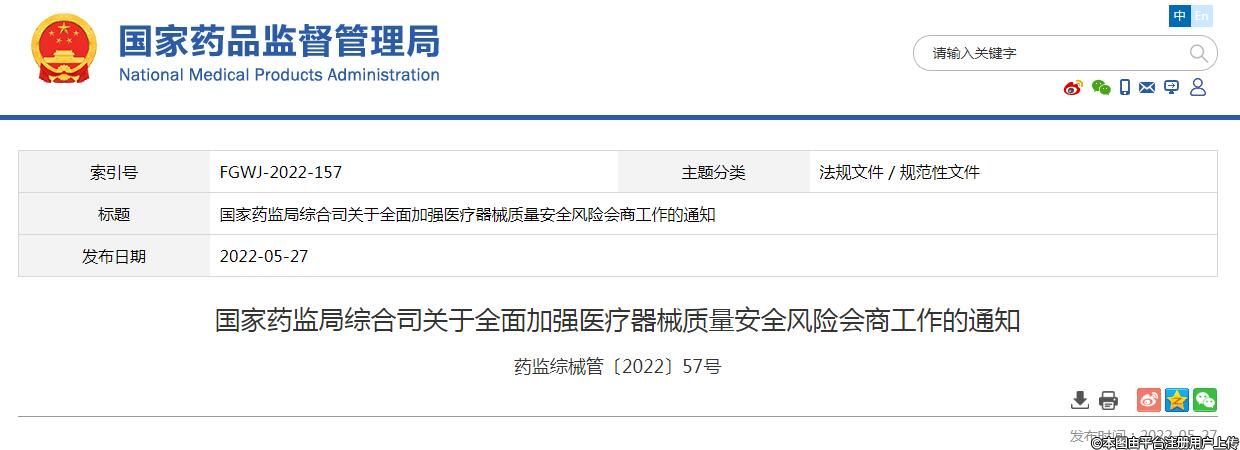 國家藥監(jiān)局發(fā)布通知加強醫(yī)療器械質(zhì)量安全風(fēng)險會商工作