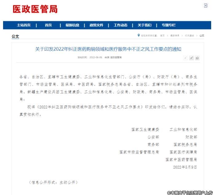 國(guó)家九部委印發(fā)通知:糾正醫(yī)藥購(gòu)銷領(lǐng)域和醫(yī)療服務(wù)中的不正之風(fēng)