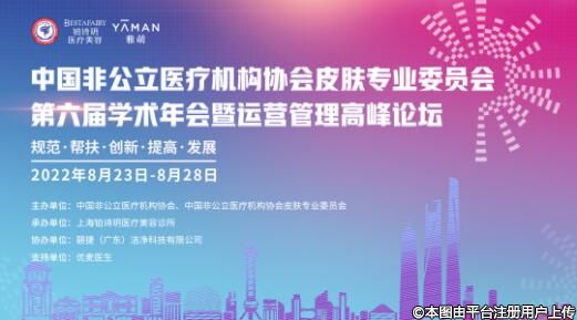 為共同促進我國皮膚醫(yī)學(xué)及醫(yī)療美容行業(yè)的健康有序發(fā)展,加強社會辦醫(yī)療機構(gòu)與公立醫(yī)療機構(gòu)的合作交流,提升醫(yī)療質(zhì)量和服務(wù)水平,經(jīng)研究,決定于2022年8月24-28日以線上形式舉辦“中國非公立醫(yī)療機構(gòu)協(xié)會皮膚專業(yè)委員會(以下簡稱”專委會“)第六屆學(xué)術(shù)年會暨運營管理高峰論壇”?,F(xiàn)誠摯邀請您參加本次會議,有關(guān)事項通知如下:
