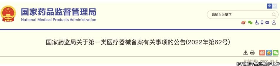 ▲NMPA對外發(fā)布《關(guān)于第一類醫(yī)療器械備案有關(guān)事項(xiàng)的公告(2022年第62號)》(圖源:《NMPA)