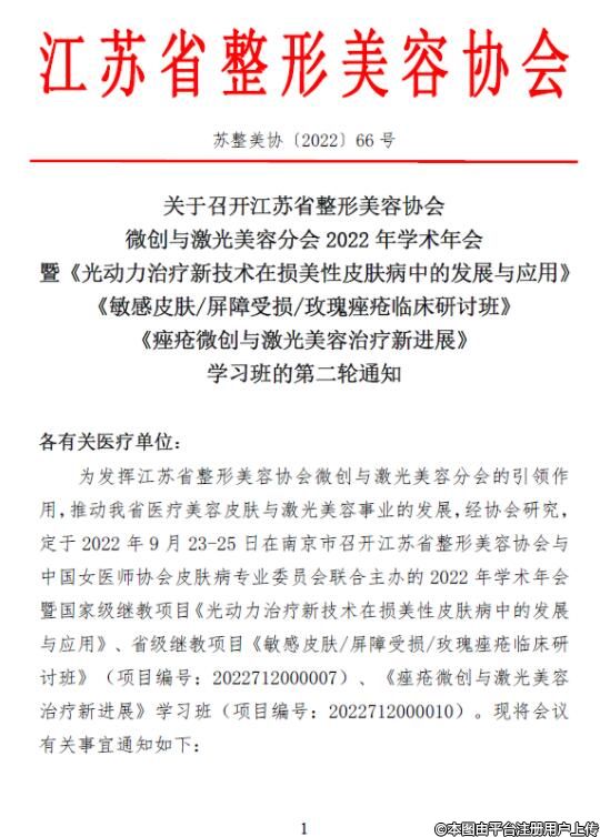 江蘇省整形美容協(xié)會(huì)微創(chuàng)與激光美容分會(huì)2022年學(xué)術(shù)年會(huì)文件