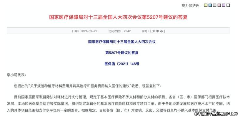 人大代建議“將種牙納入醫(yī)保”國(guó)家醫(yī)保局答復(fù)
