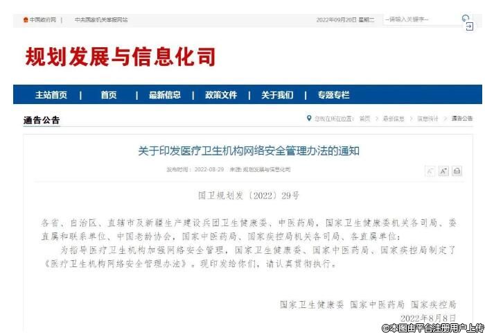 三部門印發(fā)《關(guān)于印發(fā)醫(yī)療衛(wèi)生機構(gòu)網(wǎng)絡(luò)安全管理辦法的通知》