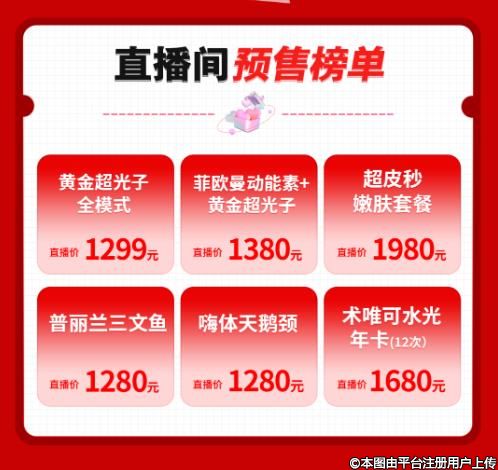 直播間部分項目全線開啟預(yù)售