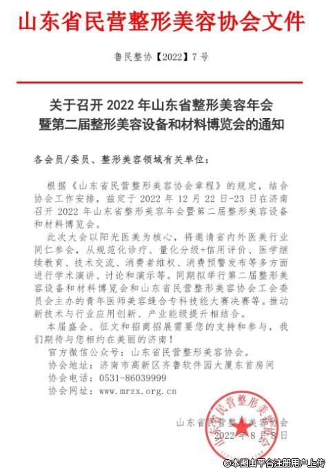 第一輪通知∣陽光醫(yī)美 誠(chéng)信造美∣2022年山東省整形美容年會(huì)(12月22日-23日)
