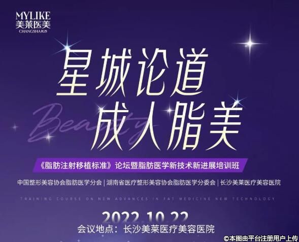 為引領醫(yī)美學術新高度,長沙美萊攜手中國整形美容協(xié)會脂肪醫(yī)學分會、湖南省醫(yī)療整形美容協(xié)會脂肪醫(yī)學分委會,于10月22日共同舉辦“星城論道,成人脂美”———《脂肪注射移植標準》論壇暨脂肪醫(yī)學新技術新進展培訓班。