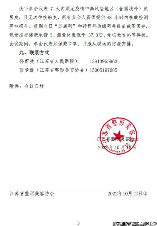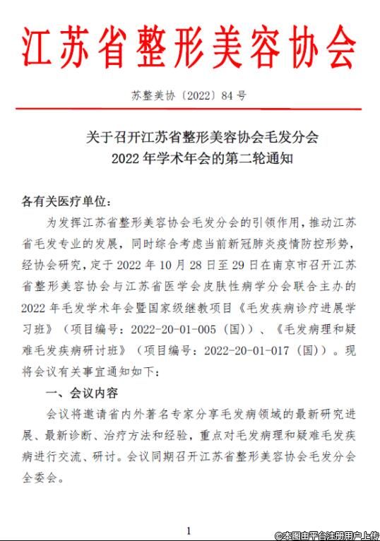 關于召開江蘇省整形美容協(xié)會毛發(fā)分會2022年學術年會的第二輪通知