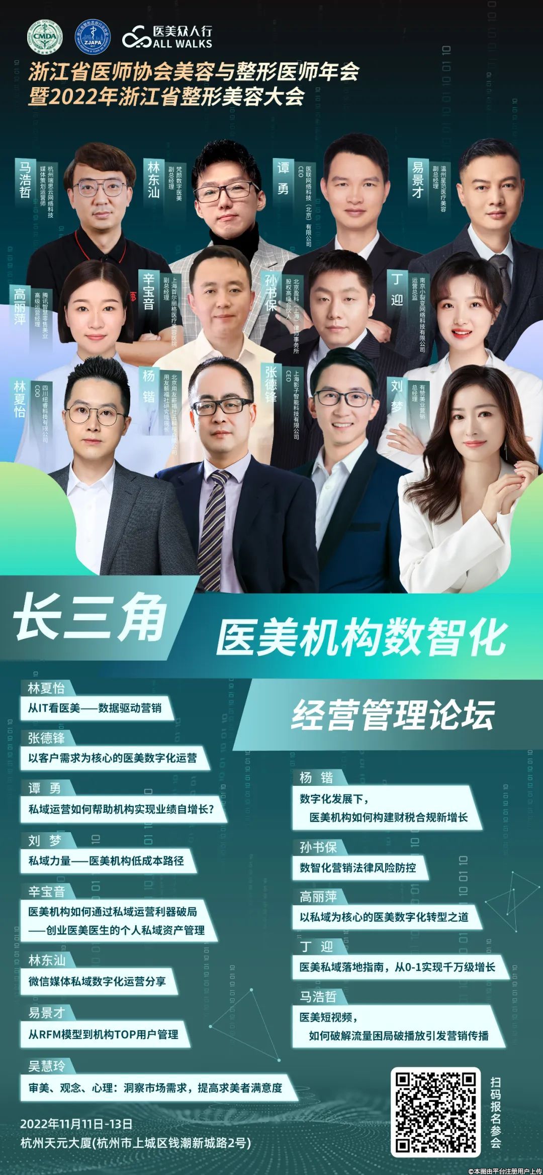 值此之際,本屆長(zhǎng)三角醫(yī)美機(jī)構(gòu)數(shù)智化經(jīng)營(yíng)管理論壇即將在杭州召開(kāi)。本次論壇將于11月11-13日“浙江省醫(yī)師協(xié)會(huì)美容與整形醫(yī)師年會(huì)暨 2022 年浙江省整形美容大會(huì)”舉辦期間召開(kāi),旨在圍繞“醫(yī)美機(jī)構(gòu)數(shù)智化經(jīng)營(yíng)管理”的新理念、新趨勢(shì)、新機(jī)遇,通過(guò)專家經(jīng)驗(yàn)分享,創(chuàng)新思維交流,助力醫(yī)美企業(yè)構(gòu)建合理的數(shù)智化運(yùn)營(yíng)方案,提升企業(yè)的核心競(jìng)爭(zhēng)力,為醫(yī)美行業(yè)在數(shù)字經(jīng)濟(jì)時(shí)代的升級(jí)發(fā)展貢獻(xiàn)力量。