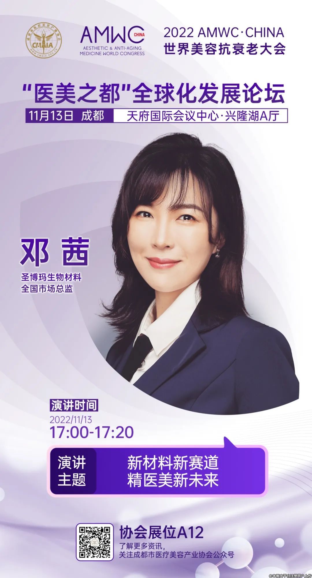 11月13日13:30-17:40,第二屆“醫(yī)美之都”全球化發(fā)展論壇將在AMWC China 2022 世界美容抗衰老大會現(xiàn)場同期舉辦。
