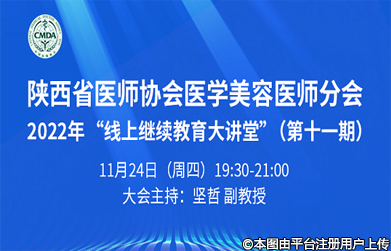 直播預(yù)告 陜西省醫(yī)師協(xié)會醫(yī)學(xué)美容醫(yī)師分會 2022年“線上繼續(xù)教育大講堂” (第十一期)
