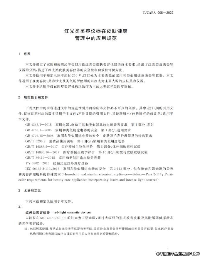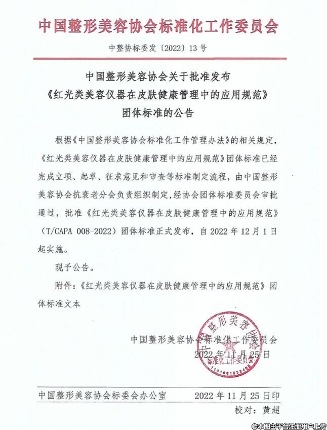 根據(jù)《中國(guó)整形美容協(xié)會(huì)標(biāo)準(zhǔn)化工作管理辦法》的相關(guān)規(guī)定,《紅光類(lèi)美容儀器在皮膚健康管理中的應(yīng)用規(guī)范》團(tuán)體標(biāo)準(zhǔn)已經(jīng)完成立項(xiàng)、起草、征求意見(jiàn)和審查等標(biāo)準(zhǔn)制定流程,由中國(guó)整形美容協(xié)會(huì)抗衰老分會(huì)負(fù)責(zé)組織制定,經(jīng)協(xié)會(huì)團(tuán)體標(biāo)準(zhǔn)委員會(huì)審批通過(guò),批準(zhǔn)《紅光類(lèi)美容儀器在皮膚健康管理中的應(yīng)用規(guī)范》(T/CAPA 008-2022)團(tuán)體標(biāo)準(zhǔn)正式發(fā)布,自2022年12月1日起實(shí)施。