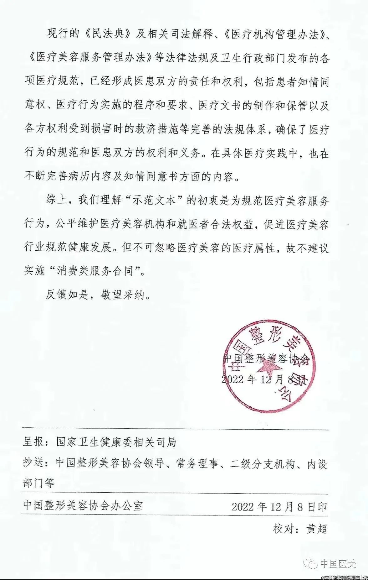 中國(guó)整形美容協(xié)會(huì)關(guān)于《醫(yī)療美容消費(fèi)服務(wù)合同(示范文本)》(征求意見(jiàn)稿)意見(jiàn)的回復(fù)