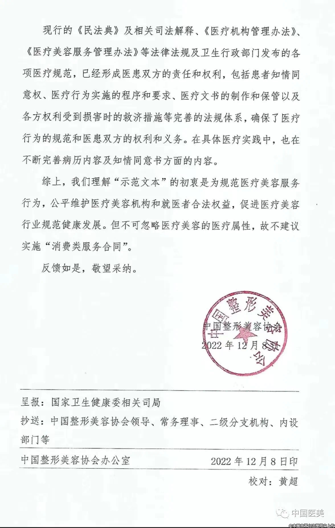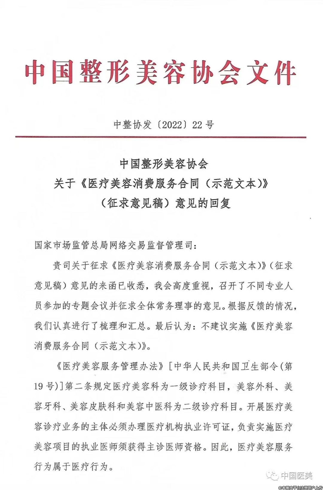 中整協(xié):不建議實(shí)施《醫(yī)療美容消費(fèi)服務(wù)合同(示范文本)》