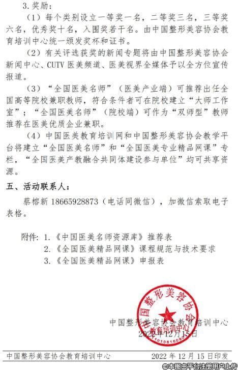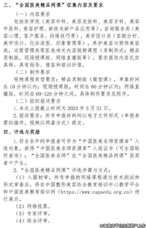 創(chuàng)建中國醫(yī)美名師資源庫,征集全國醫(yī)美精品網(wǎng)課,評選全國醫(yī)美名師活動的通知