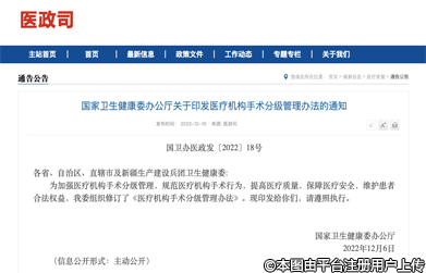第五條國家衛(wèi)生健康委負(fù)責(zé)全國醫(yī)療機(jī)構(gòu)手術(shù)分級(jí)管理工作的監(jiān)督管理。