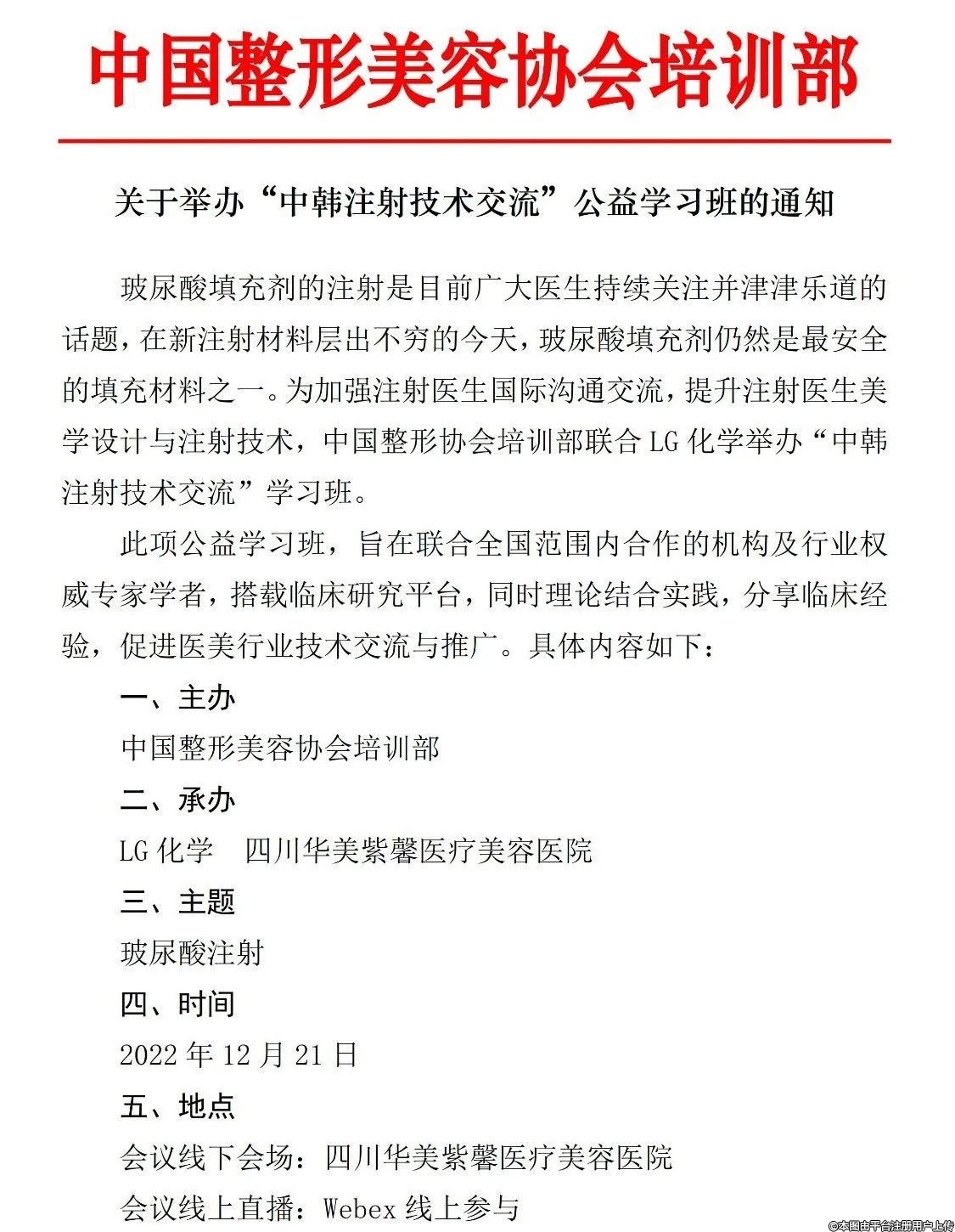 關(guān)于舉辦“中韓注射技術(shù)交流”公益學(xué)習(xí)班的通知