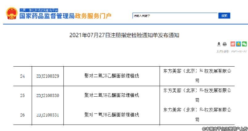 據(jù)悉,東方美客系由(以下簡稱“愛美客”,股票代碼:300896)與韓國DongBang Medical co.,Ltd(株式會社東方醫(yī)療)合資成立。其中,愛美客持有該公司51%股份。東方美客通過引進韓國專利技術,進行埋植線產(chǎn)品的研發(fā)和生產(chǎn),將進一步提升其在埋植線產(chǎn)品方向的長期領先和競爭能力。(推薦閱讀:喜訊 | Dong Bang Medical“注射用交聯(lián)透明質(zhì)酸鈉凝膠”獲NMPA批準上市?。┕_資料獲悉,2021年7月,東方美客正式啟動3款“聚對二氧環(huán)己酮面部埋植線”注冊申報工作。