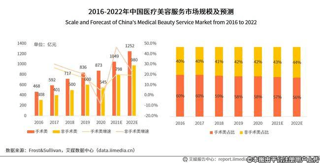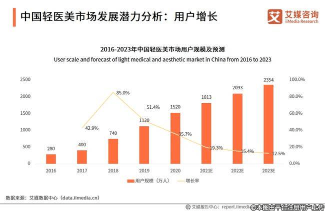 艾媒咨詢《2021年中國輕醫(yī)美行業(yè)研究及產(chǎn)業(yè)鏈分析報(bào)告》數(shù)據(jù)顯示,2020年中國非手術(shù)類醫(yī)美市場規(guī)模為545億元,預(yù)計(jì)2021年市場規(guī)模將增至798億元,在未來幾年中輕醫(yī)美占比不斷增大;2020年輕醫(yī)美用戶規(guī)模達(dá)1520萬,預(yù)計(jì)到2021年將達(dá)到1813萬。艾媒咨詢分析師認(rèn)為,輕醫(yī)美因其創(chuàng)傷小、風(fēng)險(xiǎn)低、單價(jià)低等優(yōu)勢,對(duì)比手術(shù)類醫(yī)美將具有更高的市場接受度和復(fù)購率,用戶規(guī)模的持續(xù)增長,表明中國輕醫(yī)美市場呈現(xiàn)快速發(fā)展趨勢,將會(huì)成為未來推動(dòng)醫(yī)美行業(yè)增長的主要?jiǎng)恿Α?/p>