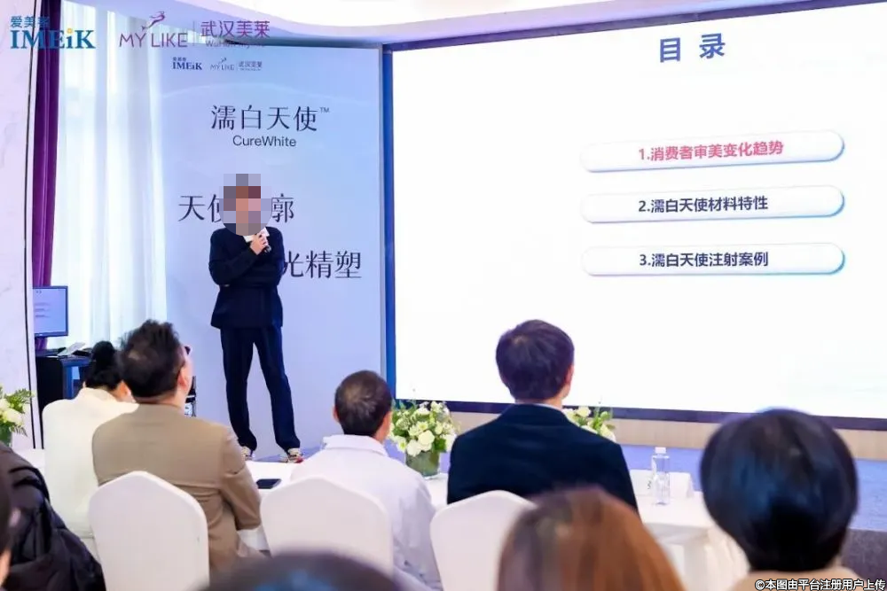 緊接著武漢美萊注射美容中心技術(shù)院長祝棟就高光精塑--天使輪廓T區(qū)技術(shù)方案進行全面講解。