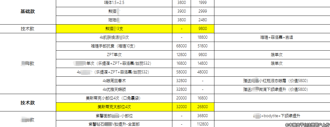 3、技術款:(1)小V臉網(wǎng)紅款 1980;(2)伊婉VP 3支 4999;(3)艾莉薇風尚 3支 8800;(4)公主玻尿酸3支 9800;(5)艾莉薇傳奇3支 13800