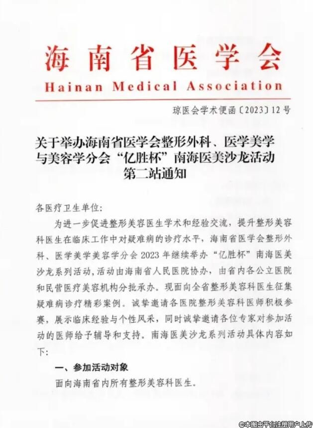 1、參加活動對象:海南省內(nèi)所有整形美容科醫(yī)生