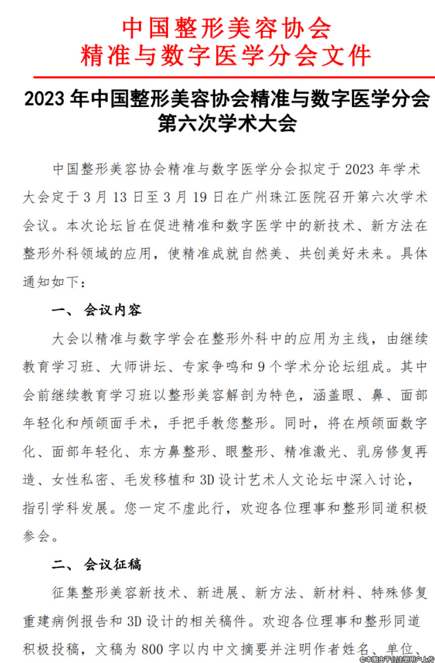 2023年中國整形美容協(xié)會(huì)精準(zhǔn)與數(shù)字醫(yī)學(xué)分會(huì)第六次學(xué)術(shù)大會(huì)