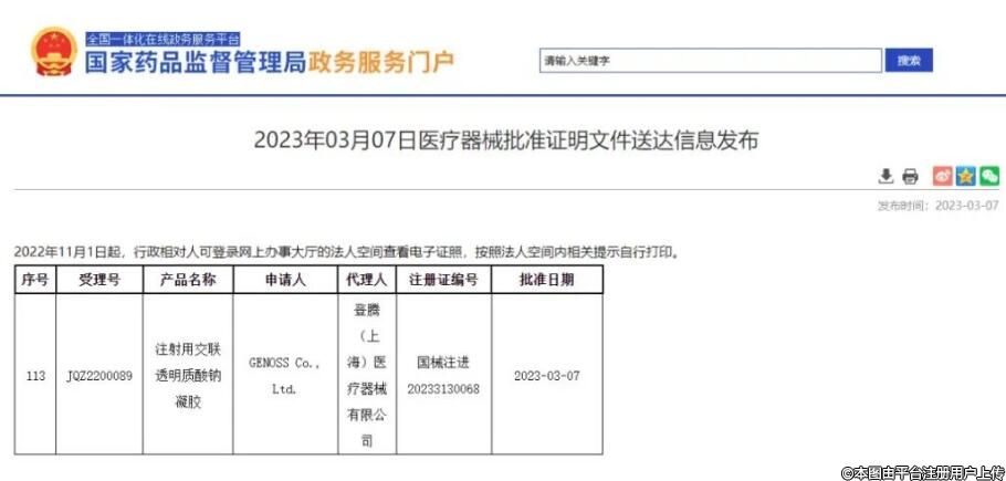 3月7日消息,康哲藥業(yè)控股有限公司旗下皮膚醫(yī)美業(yè)務(wù)公司康哲美麗“MONALISA Lidocaine Filler含利多卡因注射用交聯(lián)透明質(zhì)酸鈉凝膠”正式獲得NMPA批準(zhǔn)上市,注冊證號:國械注進(jìn)20233130068。