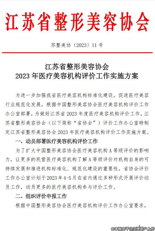 江蘇省整形美容協(xié)會(huì)2023年醫(yī)療美容機(jī)構(gòu)評(píng)價(jià)工作實(shí)施方案