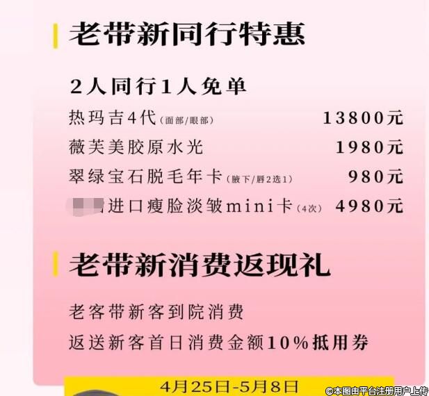 還有二人同行,一人免單活動(dòng),老會(huì)員帶新顧客到院還能享受,新顧客首日消費(fèi)金額的10%抵扣券,當(dāng)然是肥水不留外人田,喊上小姐妹們,一起來(lái)美吧~