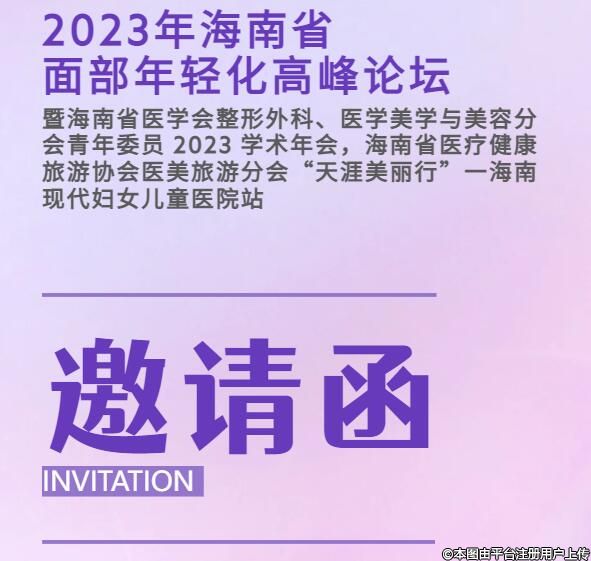 2023年海南省面部年輕化高峰論壇暨海南省醫(yī)學會整形外科、醫(yī)學美學與美容分會青年委員 2023 學術(shù)年會,海南省醫(yī)療健康旅游協(xié)會醫(yī)美旅游分會“天涯美麗行”一海南現(xiàn)代婦女兒童醫(yī)院站。海南省醫(yī)學會、海南省醫(yī)療健康旅游協(xié)會將于 2023年6月3日(周六)在海口舉辦2023年海南省面部年輕化高峰論壇,將邀請省內(nèi)外著名整形美容專家進行學術(shù)交流。誠摯歡迎省內(nèi)同行踴躍參會!