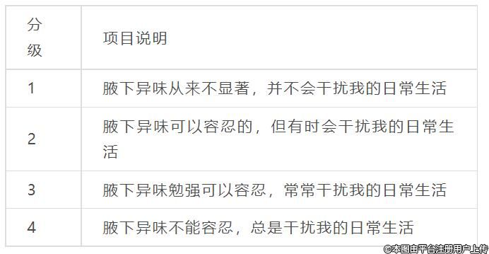 哪些人需要治療腋臭?首先我們了解一下腋臭分級(jí):