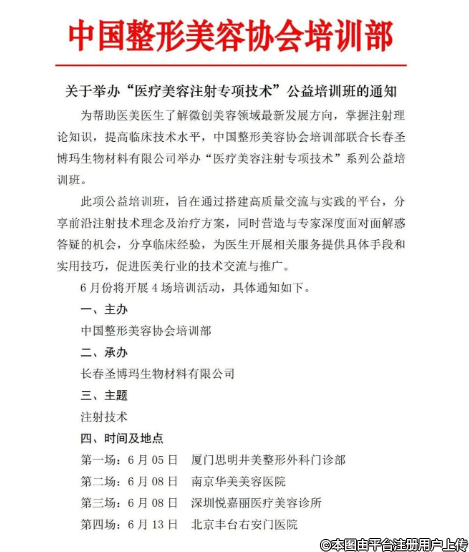 為幫助醫(yī)美醫(yī)生了解微創(chuàng)美容領(lǐng)域最新發(fā)展方向,掌握注射理論知識(shí),提高臨床技術(shù)水平,中國(guó)整形美容協(xié)會(huì)培訓(xùn)部聯(lián)合長(zhǎng)春圣博瑪生物材料有限公司舉辦“醫(yī)療美容注射專項(xiàng)技術(shù)”系列公益培訓(xùn)班。