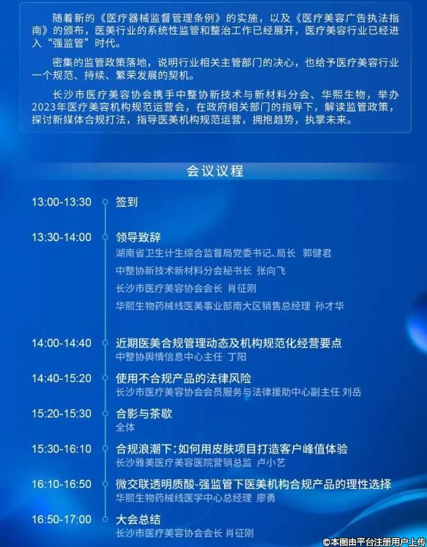 會(huì)議通知:2023醫(yī)美機(jī)構(gòu)規(guī)范運(yùn)營會(huì)-長(zhǎng)沙站