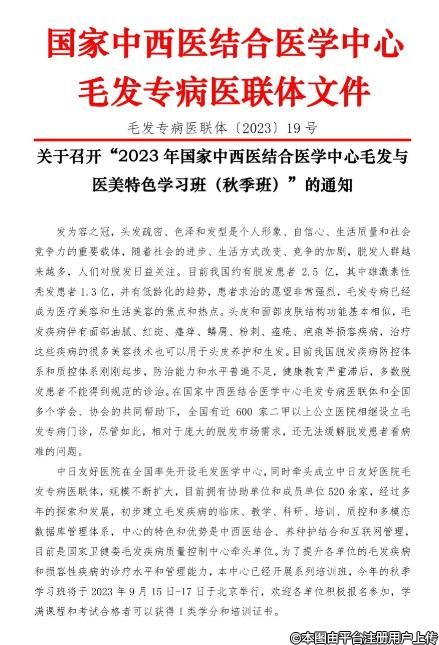 國家中西醫(yī)結(jié)合醫(yī)學(xué)中心毛發(fā)與醫(yī)美特色學(xué)習(xí)班通知