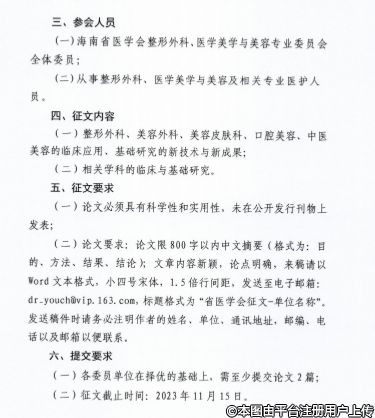 海南省醫(yī)學(xué)會(huì)關(guān)于召開(kāi)整形外科、醫(yī)學(xué)美學(xué)與美容分會(huì)2023學(xué)術(shù)年會(huì)的通知