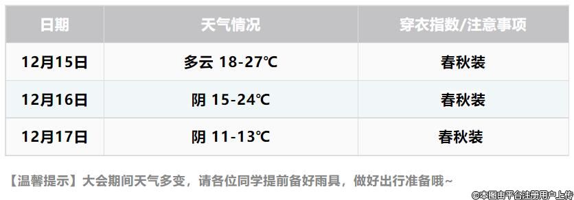 1、由于現(xiàn)場簽到參會人數(shù)較多,請您遵循秩序盡量在12月14日完成報到,以便順利參會;