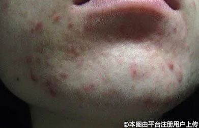小米至豌豆大的堅硬的小丘疹,呈淡紅色至深紅色,一般表現(xiàn)為初期,發(fā)紅后很快會化膿或者雷白頭,擠出有膿血,部分丘疹再度感染,演化成丘疹型痘痘。