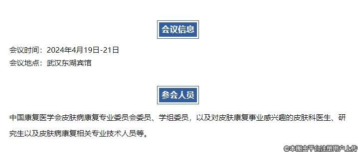 為充分發(fā)揮高端學術(shù)會議引領(lǐng)輻射作用,在中國皮膚科醫(yī)生中推廣皮膚病康復理念,提升中國皮膚病整體康復能力,根據(jù)中國康復醫(yī)學會2024年度學術(shù)活動計劃,定于2024年4月19日-21日在武漢東湖賓館舉辦第六屆中國康復醫(yī)學會皮膚病康復專業(yè)委員會學術(shù)年會(會議編碼: XSHD2024-024)。
