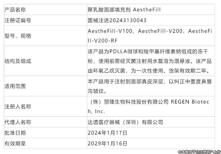 AestheFill 童顏針為韓國知名醫(yī)美企業(yè)REGEN Biotech, Inc.研發(fā)的一款“醫(yī)美再生注射劑”,于2014年首次在韓國獲批上市,截至目前已在全球60余個國家和地區(qū)上市銷售。2024年1月17日,AestheFill獲國家藥品監(jiān)督管理局批準,正式登陸中國內地市場。