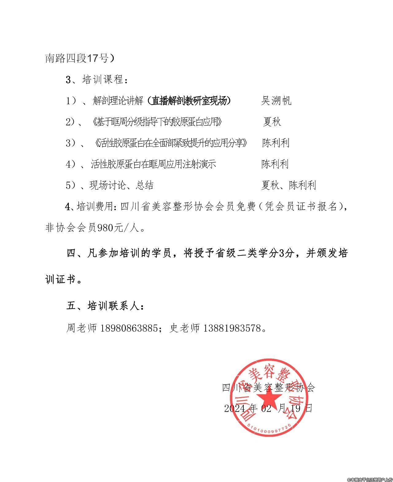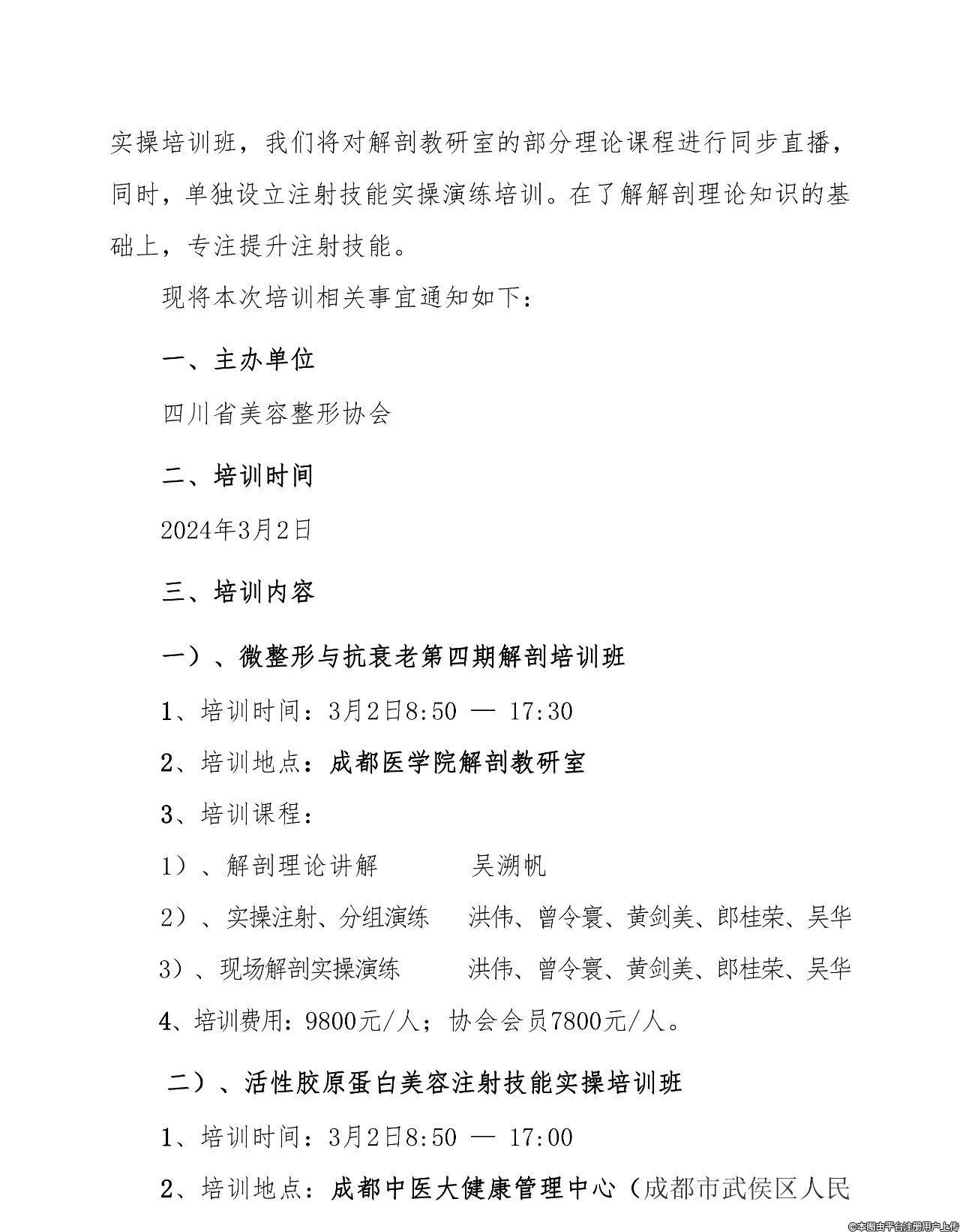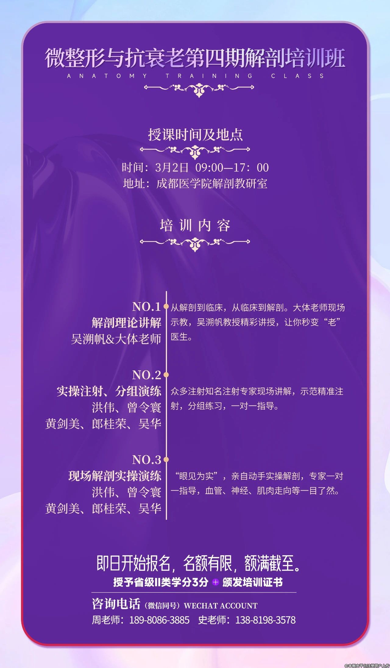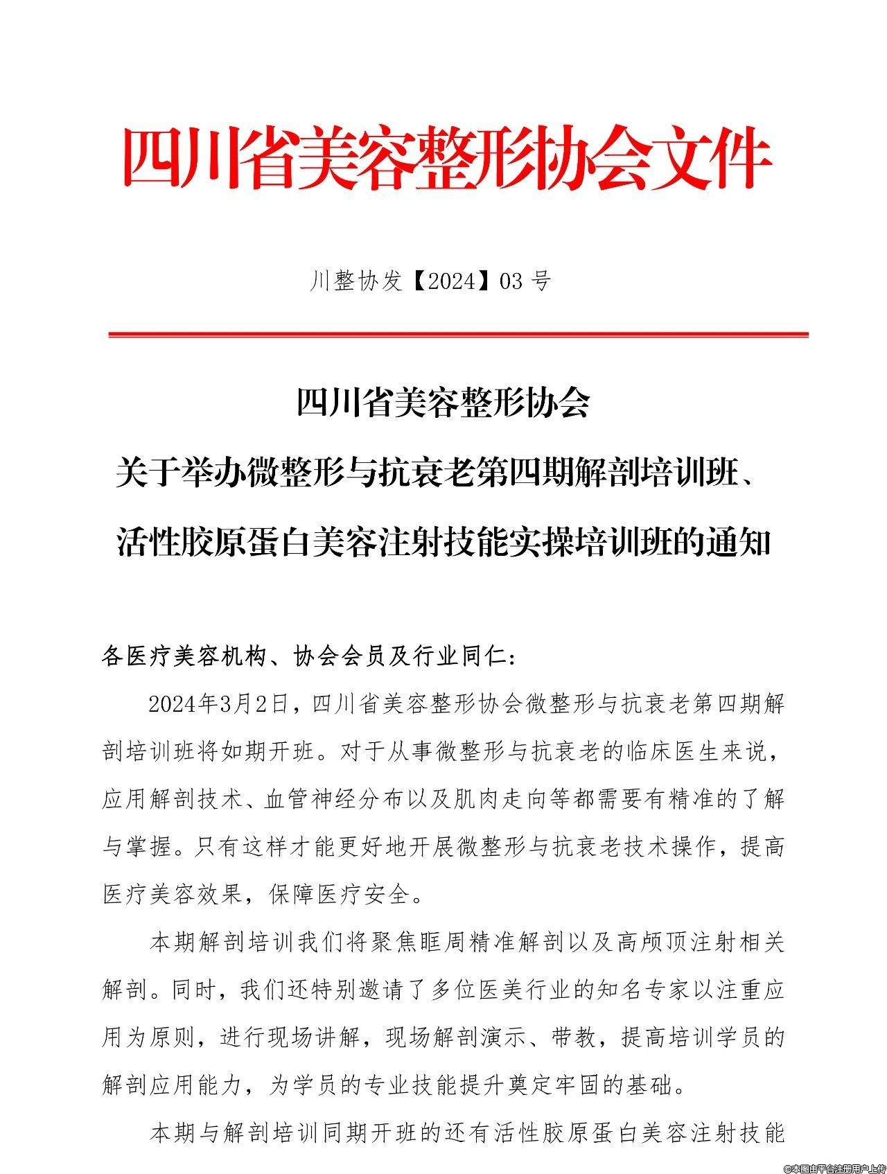 2024年3月2日,四川省美容整形協(xié)會微整形與抗衰老第四期解剖培訓(xùn)班將如期開班。對于從事微整形與抗衰老的臨床醫(yī)生來說,應(yīng)用解剖技術(shù)、血管神經(jīng)分布以及肌肉走向等都需要有精準(zhǔn)的了解與掌握。只有這樣才能更好地開展微整形與抗衰老技術(shù)操作,提高醫(yī)療美容效果,保障醫(yī)療安全。
