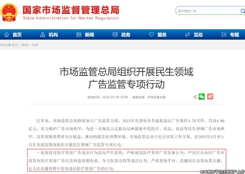▲市場監(jiān)管總局組織開展民生領(lǐng)域廣告監(jiān)管專項行動(圖源:市場監(jiān)管總局)