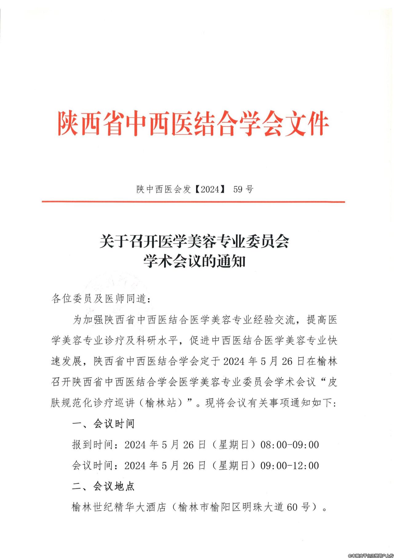 為加強(qiáng)陜西省中西醫(yī)結(jié)合醫(yī)學(xué)美容專業(yè)經(jīng)驗(yàn)交流,提高學(xué)美容專業(yè)診療及科研水平,促進(jìn)中西醫(yī)結(jié)合醫(yī)學(xué)美容專業(yè)快速發(fā)展,陜西省中西醫(yī)結(jié)合學(xué)會(huì)定于2024年5月26日在榆林召開陜西省中西醫(yī)結(jié)合學(xué)會(huì)醫(yī)學(xué)美容專業(yè)委員會(huì)學(xué)術(shù)會(huì)議“皮膚規(guī)范化診療巡講(榆林站)”。
