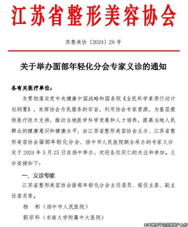 關(guān)于舉辦面部年輕化分會(huì)專(zhuān)家義診的通知
