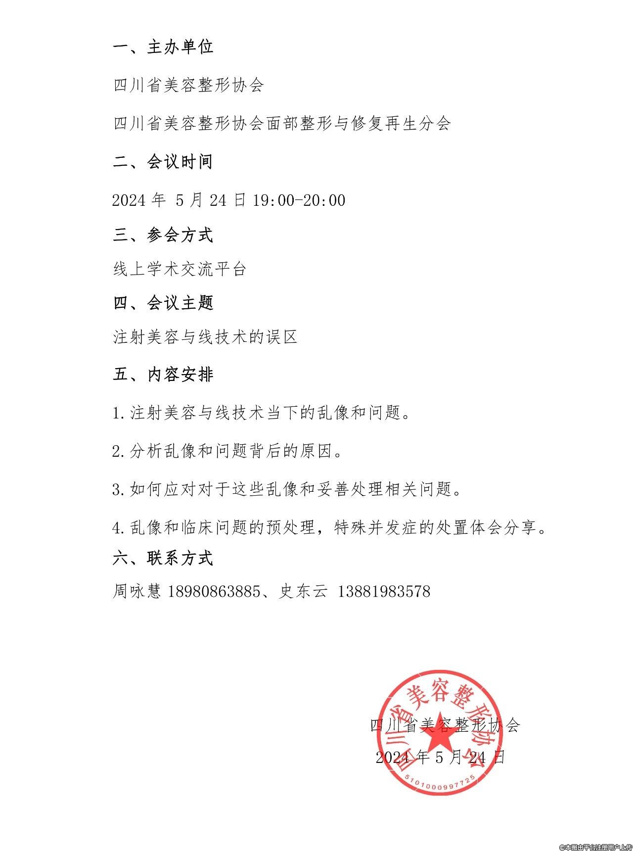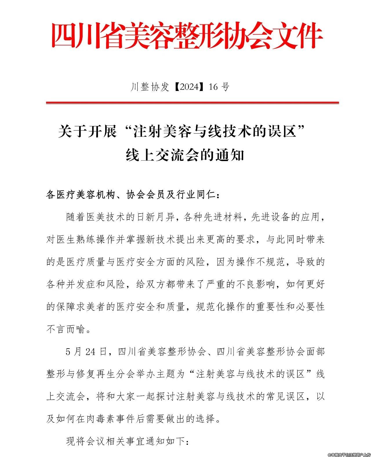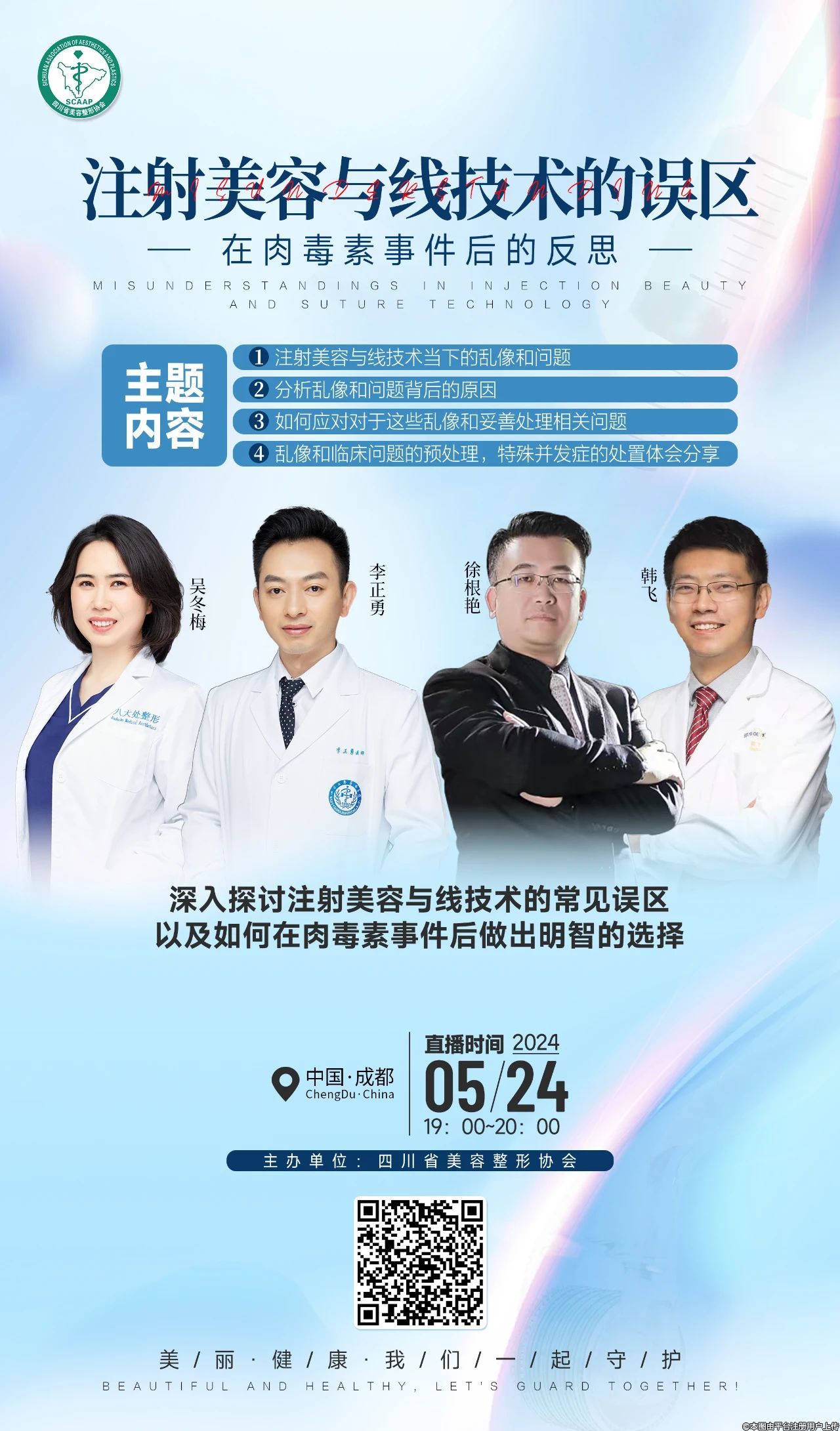 5月24日,四川省美容整形協(xié)會(huì)、四川省美容整形協(xié)會(huì)面部整形與修復(fù)再生分會(huì)舉辦主題為“注射美容與線技術(shù)的誤區(qū)”線上交流會(huì),將和大家一起探討注射美容與線技術(shù)的常見誤區(qū),以及如何在肉毒素事件后需要做出的選擇。